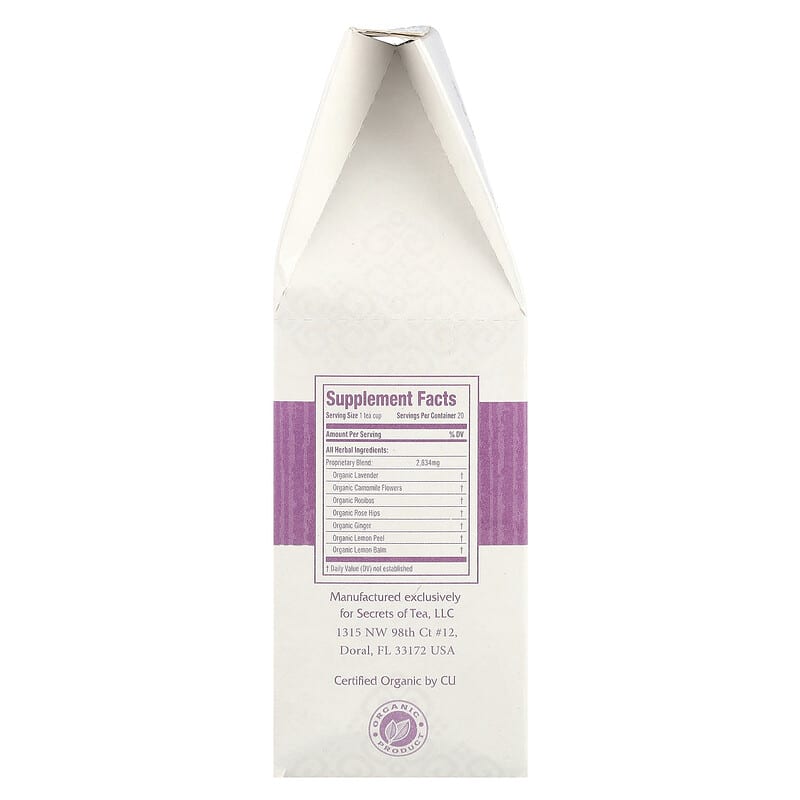 Trà Secrets of Tea RelaxCalm giúp thư giãn, không chất kích thích, 20 túi trà, 1,41 oz, lý tưởng cho giấc ngủ ngon và tinh thần thoải mái., UPC 850302006930