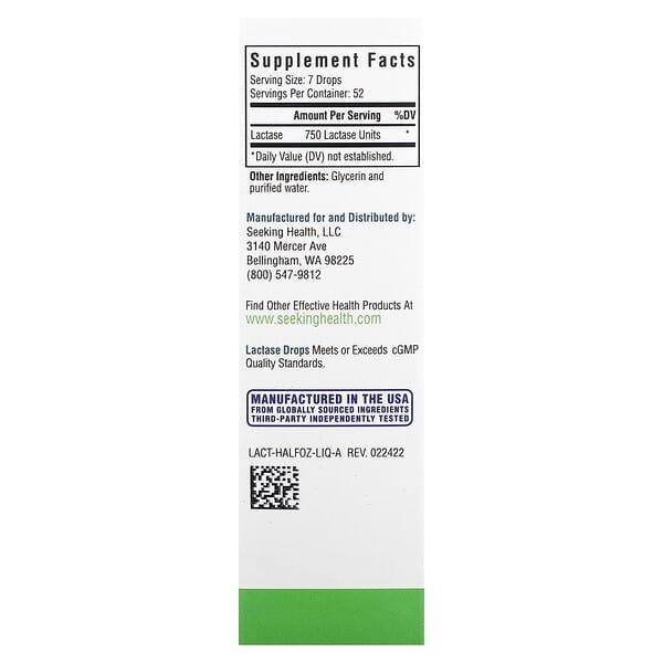 Thông tin sản phẩm Seeking Health, Lactase Drops, 0,5 fl oz (15 ml)