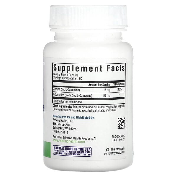 Thông tin sản phẩm Seeking Health, Zinc Carnosine, 60 viên chay