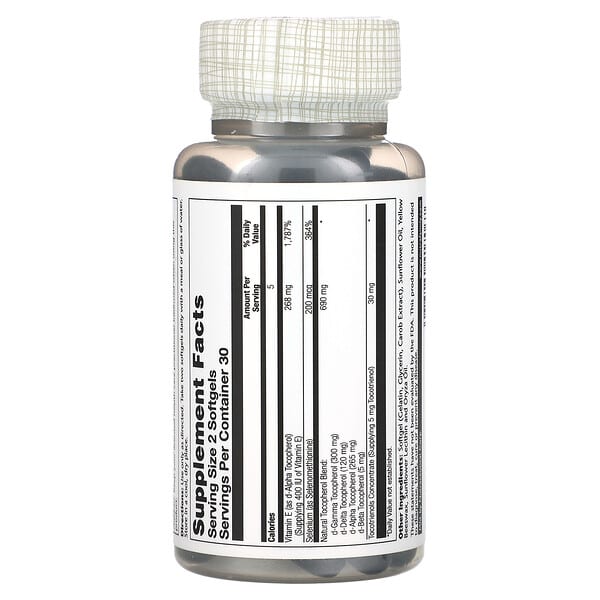 Natural Tocopherol Blend: d-Gamma Tocopherol (300 mg) d-Delta Tocopherol (120 mg) d-Alpha Tocopherol (265 mg) d-Beta Tocopherol (5 mg) | 690 mg | * |