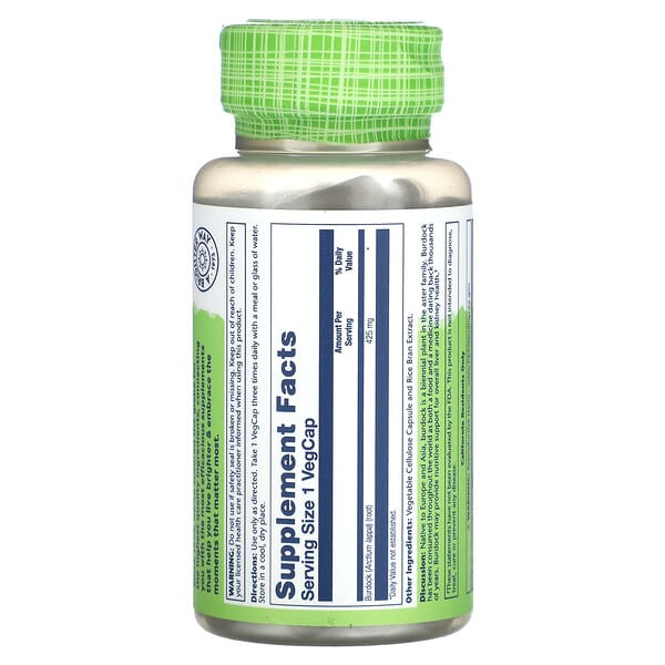 Thông tin sản phẩm Solaray, True Herbs, Burdock, 425 mg, 100 viên