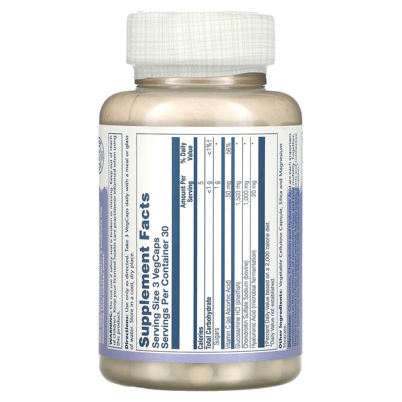 Solaray Glucosamine Chondroitin Hyaluronic Acid được thiết kế để hỗ trợ sức khỏe xương khớp và mô liên kết. Sản phẩm chứa các thành phần chính như Glucosamine, Chondroitin và Hyaluronic Acid, mỗi thành phần đóng vai trò quan trọng trong việc duy trì sức khỏe khớp: