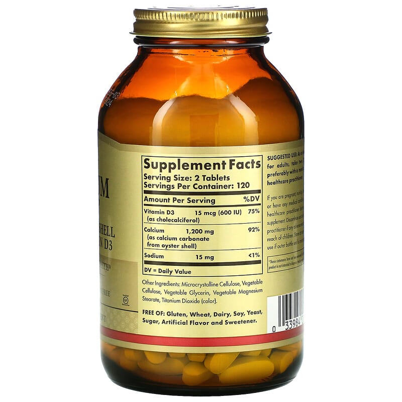 Viên uống Solgar Calcium 600 từ vỏ sò với Vitamin D3, hỗ trợ xương chắc khỏe, 240 viên. Sản phẩm dinh dưỡng chất lượng cao. 033984004177