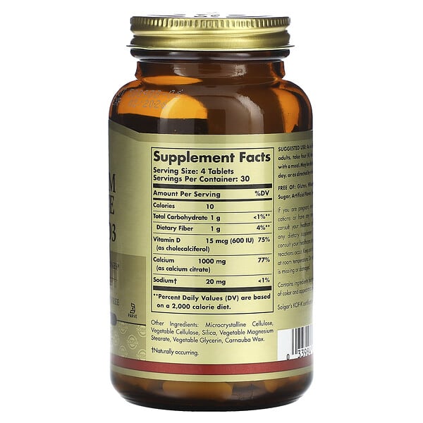 Thông tin sản phẩm Solgar, Calcium Citrate with Vitamin D3, 120 viên