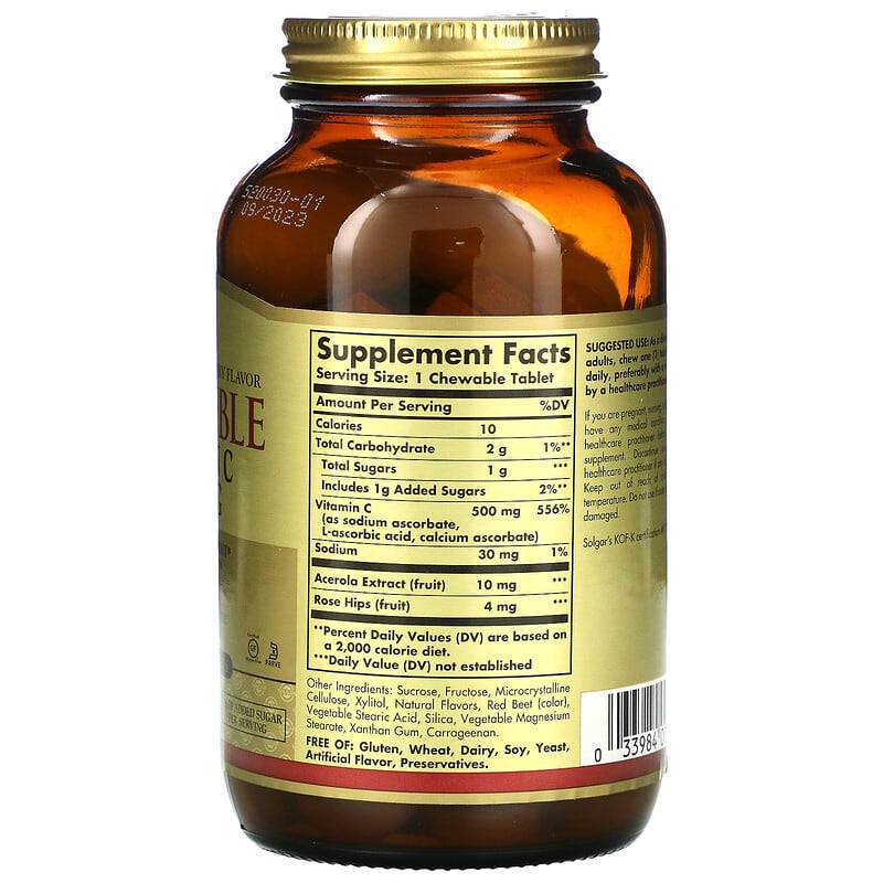 Mỗi viên nén nhai Solgar Chewable Vitamin C chứa: