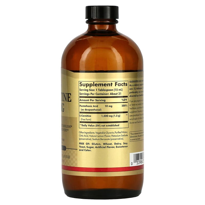Giới thiệu sản phẩm Solgar L-Carnitine Natural Lemon 1.500 mg 16 fl oz (473 ml)