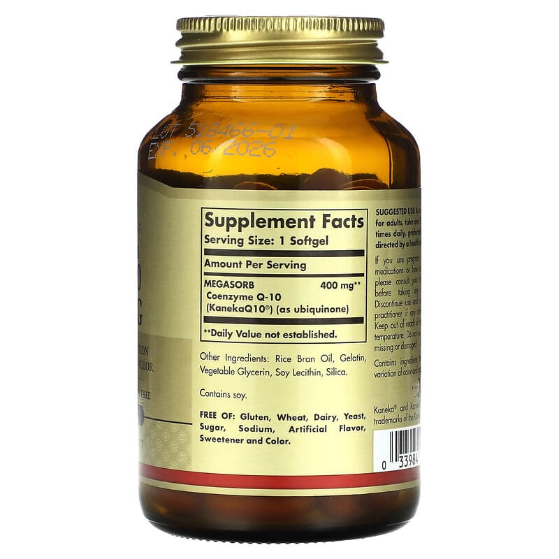 Solgar Megasorb CoQ-10 400 mg là một sản phẩm bổ sung dinh dưỡng của hãng Solgar, nổi tiếng với các sản phẩm chất lượng cao từ năm 1947. Sản phẩm này chứa Coenzyme Q-10 (CoQ-10), một chất chống oxy hóa mạnh mẽ, giúp bảo vệ cơ thể khỏi tác hại của các gốc tự do. Đặc biệt, sản phẩm này không chứa gluten, lúa mì và sữa, phù hợp với những người có chế độ ăn kiêng đặc biệt.