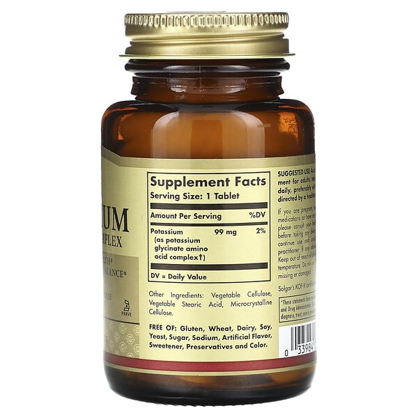 Thông tin sản phẩm Solgar, Potassium Amino Acid Complex, 100 viên