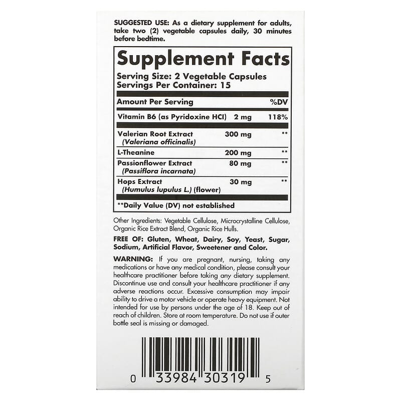 Solgar Sleep & Stress Support là sự kết hợp của các thành phần tự nhiên, bao gồm: