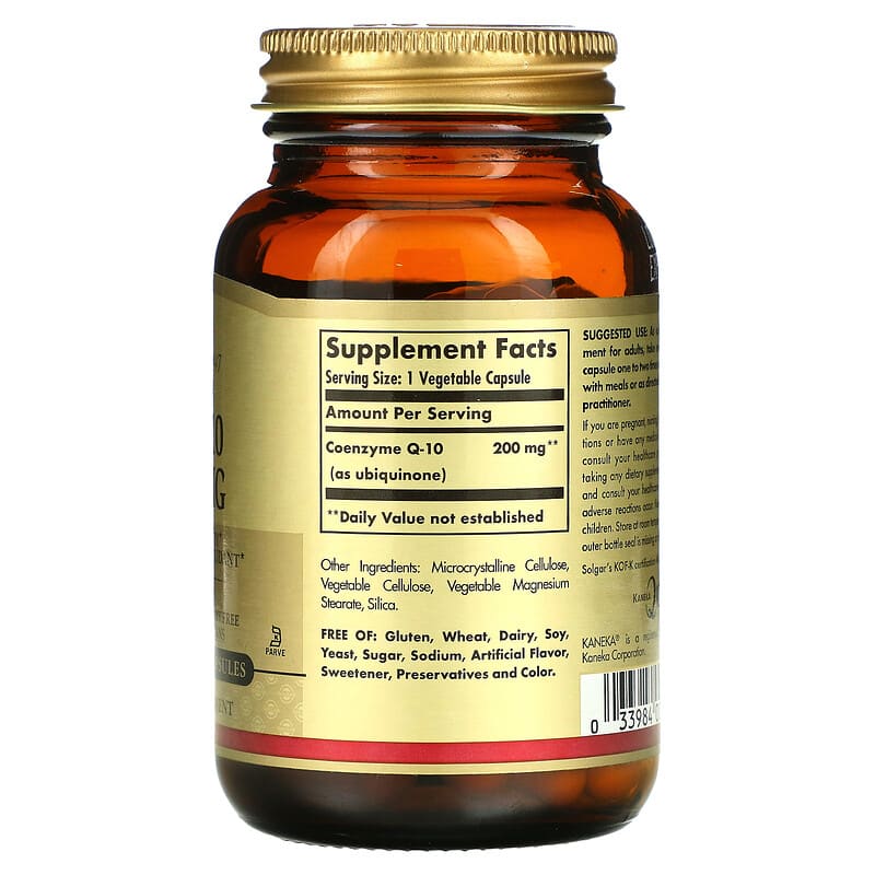 Solgar Vegan CoQ-10 chứa 200 mg Coenzyme Q10 (dưới dạng ubiquinone) trong mỗi viên nang. CoQ-10 là một chất chống oxy hóa mạnh mẽ, giúp bảo vệ tế bào khỏi sự tổn thương do các gốc tự do. Các nghiên cứu lâm sàng đã cho thấy CoQ-10 có tác dụng tích cực trong việc hỗ trợ sức khỏe tim mạch, cải thiện chức năng não bộ và hệ thần kinh.