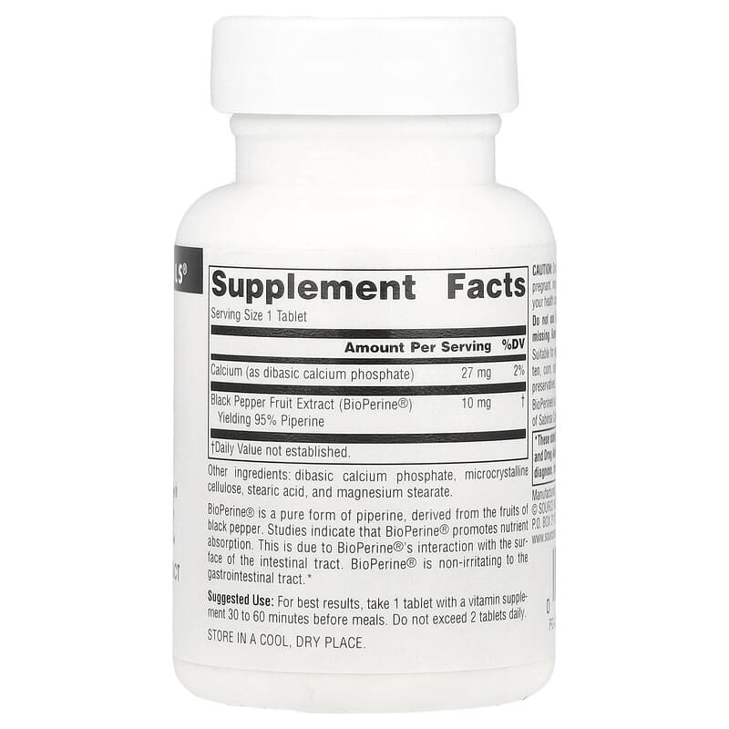 Viên uống Source Naturals BioPerine 10 mg hỗ trợ hấp thu dinh dưỡng hiệu quả, tăng cường sức khỏe, 60 viên tiện lợi., UPC 021078006435
