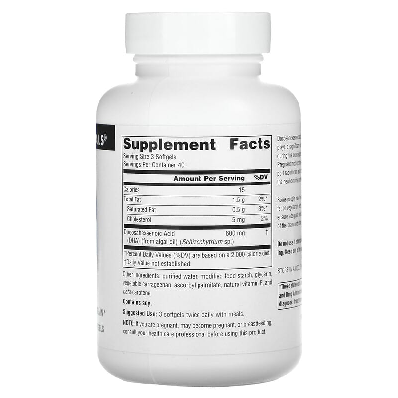 DHA 200 mg từ Source Naturals hỗ trợ sức khỏe tim mạch và trí não, 120 viên nang mềm thuần chay. 021078006558