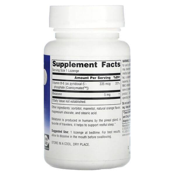 Viên ngậm Source Naturals, Melatonin, Orange, 5 mg, 200 viên ngậm chứa các thành phần chính sau:
