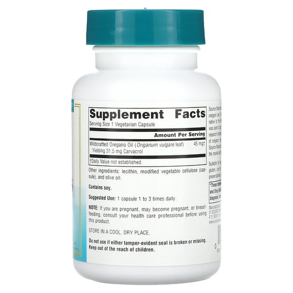 Source Naturals, Oil of Oregano được chiết xuất từ lá oregano tự nhiên (Origanum vulgare), một loại thảo mộc có nguồn gốc từ khu vực Địa Trung Hải. Sản phẩm này được tiêu chuẩn hóa với 70% carvacrol, một thành phần hoạt chất nổi bật trong dầu oregano. Mỗi viên nang cung cấp 31.5 mg carvacrol, kết hợp với các thành phần khác như lecithin, cellulose thực vật (vỏ viên), và dầu ô liu. Sản phẩm không chứa men, sữa, trứng, gluten, ngô hay lúa mì, và không có đường, tinh bột, muối, chất bảo quản, hay phẩm màu nhân tạo.
