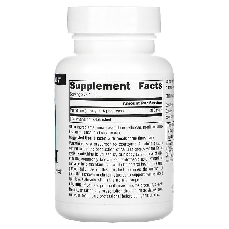 Mỗi viên nén Source Naturals Pantethine chứa 300 mg Pantethine, cùng với các thành phần khác như: