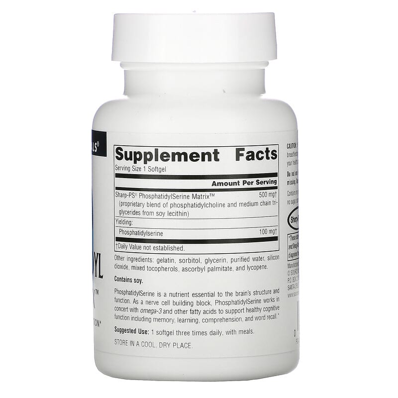 Tăng cường trí nhớ và sức khỏe não với Source Naturals Phosphatidyl Serine Matrix 500 mg 60 Softgels. Giải pháp tối ưu cho bạn. 021078019688