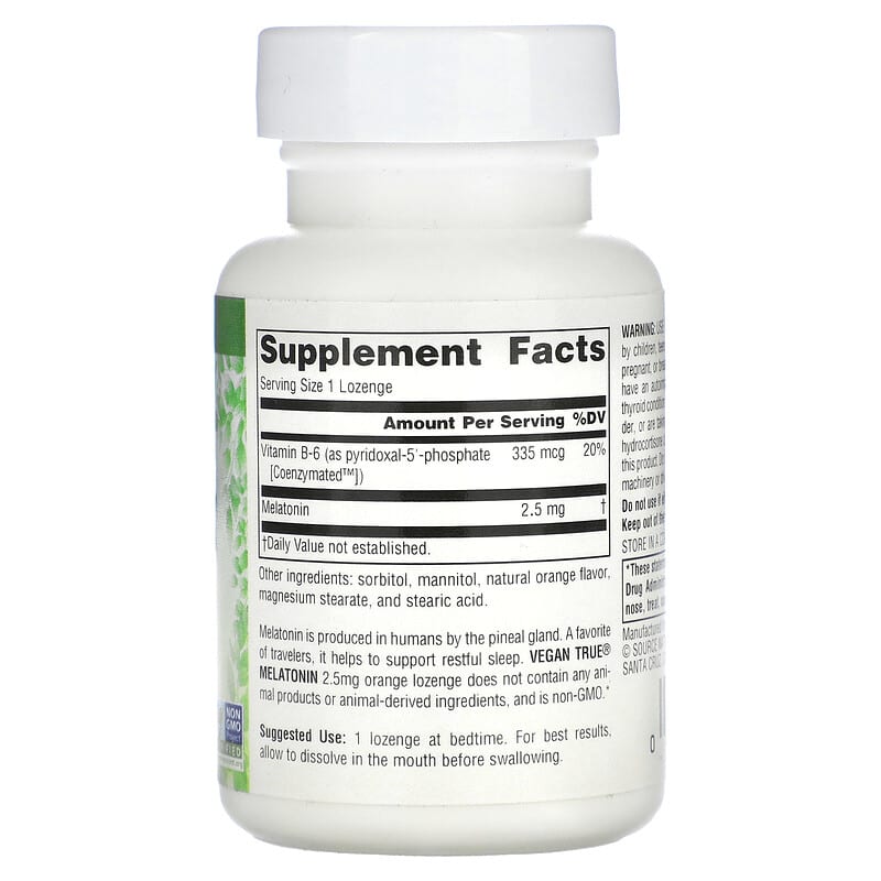 Viên ngậm melatonin vegan Source Naturals 2.5 mg giúp cải thiện giấc ngủ, hương cam tự nhiên, 60 viên. 021078025801