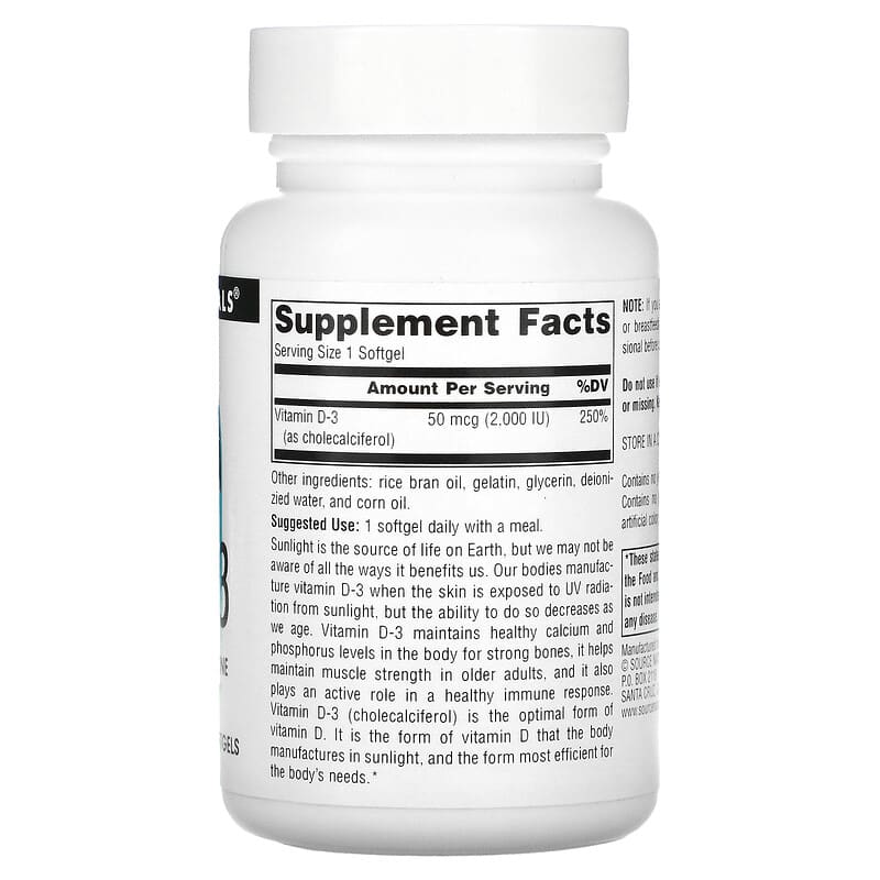Vitamin D3 50 mcg 2000 IU 200 Softgels Source Naturals