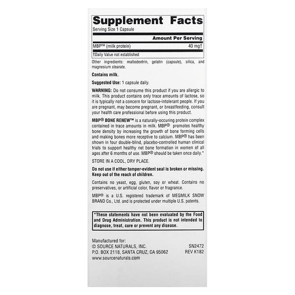 Thông tin sản phẩm Source Naturals, MBP Bone Renew, 60 viên