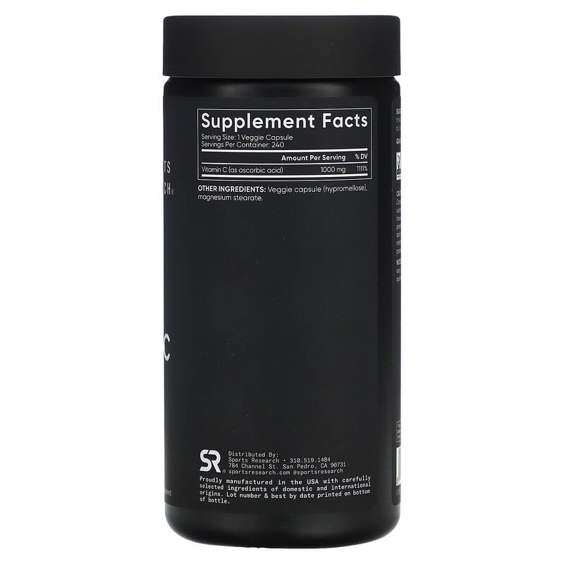 Giới thiệu sản phẩm Sports Research High Potency Vitamin C 1000 mg 240 Veggie Capsules