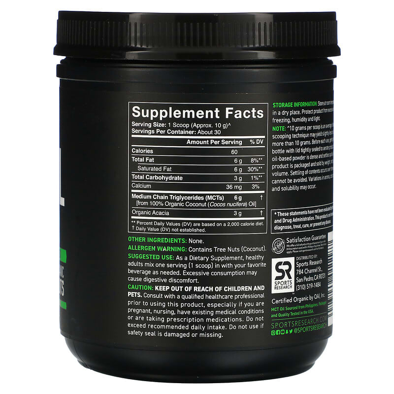 Giới thiệu sản phẩm Sports Research Organic MCT Oil Powder Unflavored 10.6 oz (300 g)