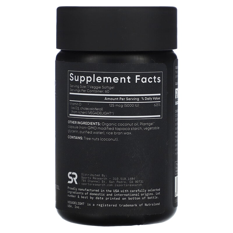 Giới thiệu sản phẩm Sports Research Vegan Vitamin D3 125 mcg (5.000 IU) 60 Veggie Softgels
