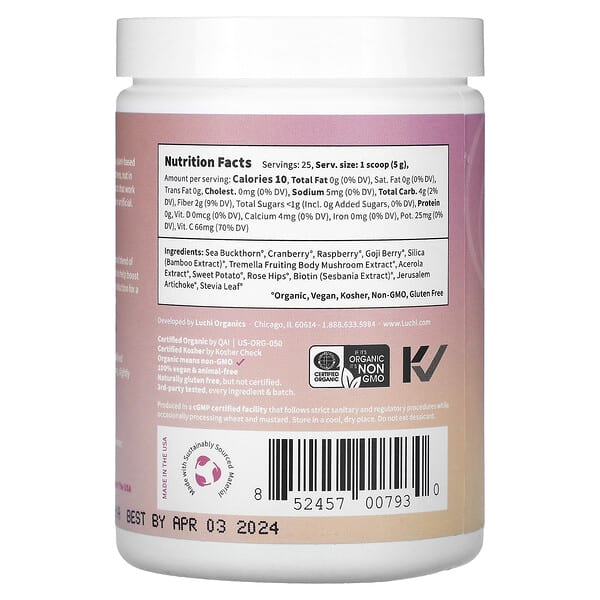 Trong thời đại hiện nay, nhu cầu chăm sóc sức khỏe và sắc đẹp ngày càng được chú trọng. Một trong những sản phẩm nổi bật giúp bạn cải thiện vẻ ngoài từ bên trong là Sprout Living, Colorfuel, Adaptogenic Drink Mix, Beauty. Đây là một sản phẩm dinh dưỡng hoàn toàn từ thực vật, không chứa hóa chất độc hại, được chứng nhận hữu cơ bởi QAIC và Kosher Check. Sản phẩm này không chỉ đóng vai trò như một thức uống bổ sung dinh dưỡng mà còn hỗ trợ quá trình sản xuất collagen tự nhiên cho cơ thể.