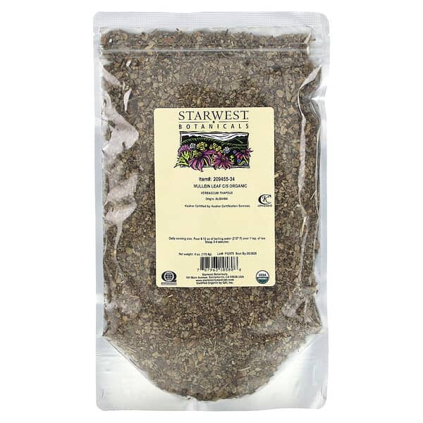 Giới thiệu về sản phẩm Starwest Botanicals Organic Mullein Leaf Cut and Sift 4 oz (113,4 g)