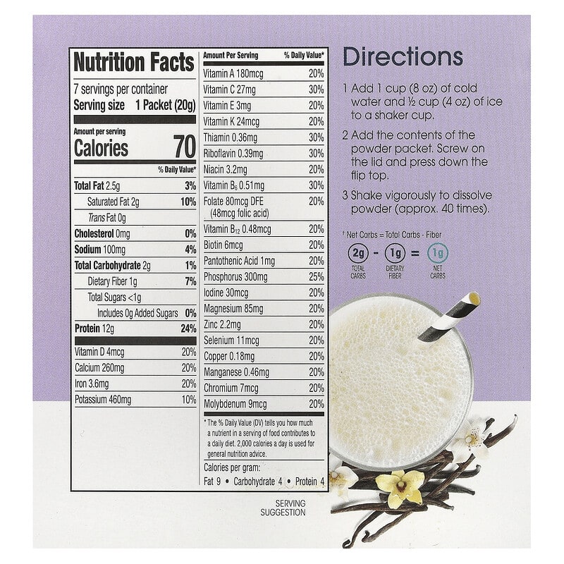 Sữa lắc Keto WonderSlim Vani 7 gói 20g, dinh dưỡng thấp carb, hỗ trợ giảm cân hiệu quả, hương vị thơm ngon, dễ sử dụng., UPC 810053941270