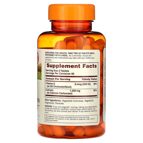 Thông tin sản phẩm Sundown Naturals, Calcium, Plus Vitamin D3, 600 mg, 120 viên (300 mg/viên)