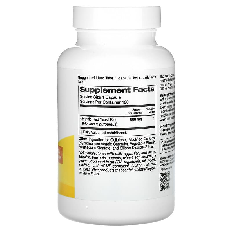 Supe Nutrition Gạo Đỏ 600 mg 120 viên hỗ trợ sức khỏe, tăng cường miễn dịch, bổ sung dinh dưỡng tự nhiên, an toàn cho sức khỏe., UPC 898220023370