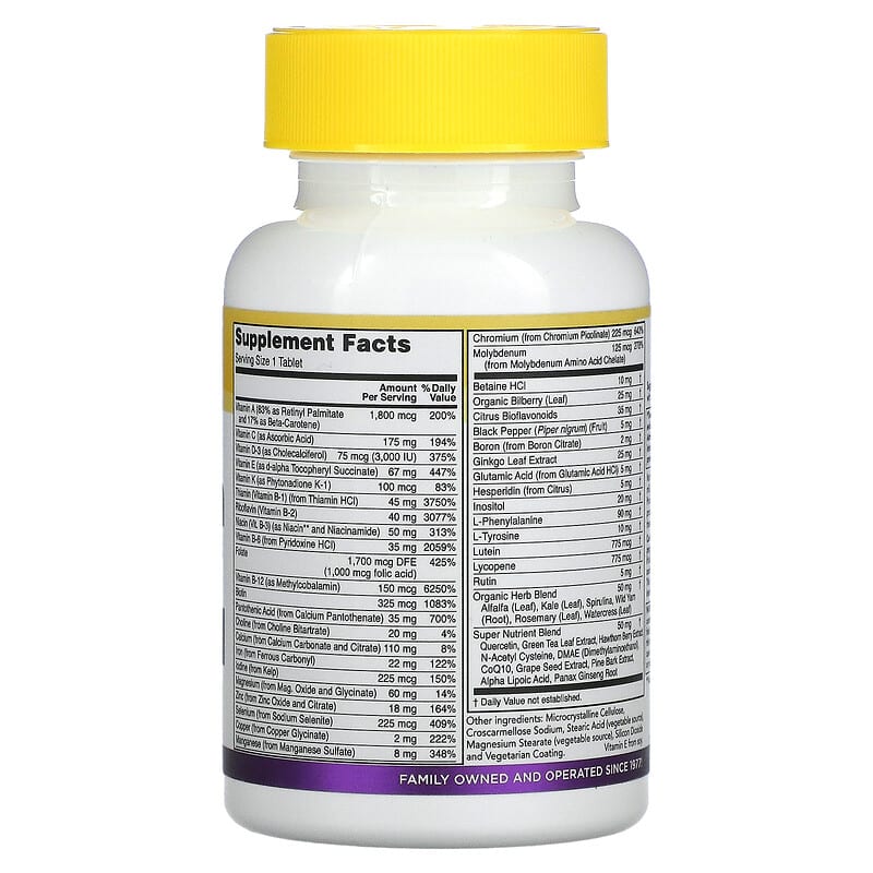 Super Nutrition SimplyOne 50+ Women Multivitamin được chiết xuất từ các thành phần tự nhiên và an toàn cho sức khỏe, bao gồm:
