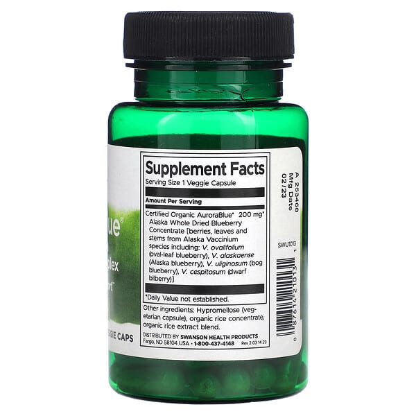 Thông tin sản phẩm Swanson, AuroraBlue Wild Alaska Blueberry Complex, 200 mg, 30 viên