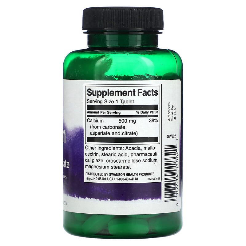 Swanson Calcium Carbonate Aspartate & Citrate 500 mg hỗ trợ sức khỏe xương chắc khỏe, 100 viên tiện dụng cho người dùng. 087614018621