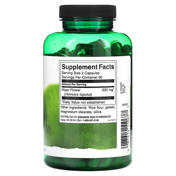 Swanson Full Spectrum Hops 310 mg 180 viên, sản phẩm chính hãng nhập khẩu từ Mỹ, hỗ trợ giấc ngủ và thư giãn hiệu quả., UPC: 087614110677