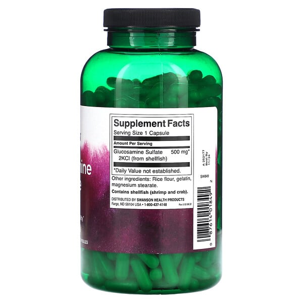 Mỗi viên nang Swanson Glucosamine Sulfate cung cấp 500 mg glucosamine sulfate 2KCI, cùng với các thành phần khác như: