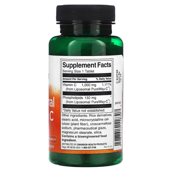 Thông tin sản phẩm Swanson, Liposomal Vitamin C, 1.000 mg, 60 viên