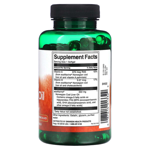 Giới thiệu về sản phẩm Swanson Norwegian Cod Liver Oil 350 mg, 250 viên