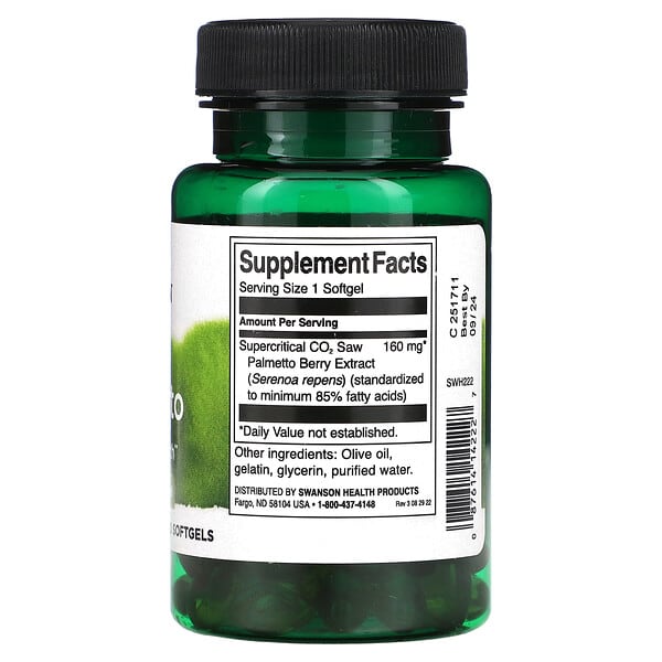 Thông tin sản phẩm Swanson, Saw Palmetto, 160 mg, 120 viên