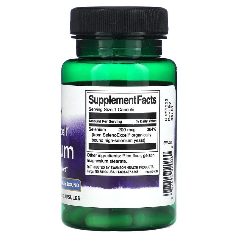 Swanson SelenoExcell Selenium 200 mcg 60 viên hỗ trợ sức khỏe miễn dịch, chống oxy hóa hiệu quả, sản phẩm tự nhiên an toàn cho sức khỏe. 087614020860