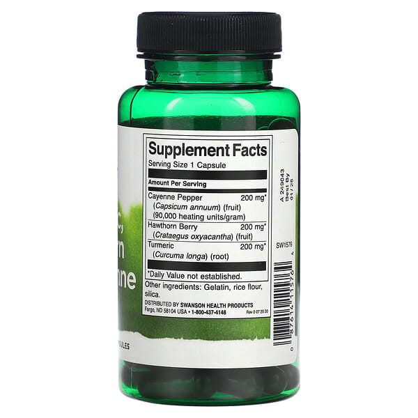Thông tin sản phẩm Swanson, Turmeric, Hawthorn & Cayenne, 60 viên