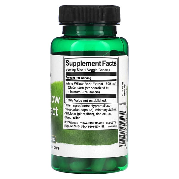 Thông tin sản phẩm Swanson, White Willow Bark Extract, 500 mg, 60 viên