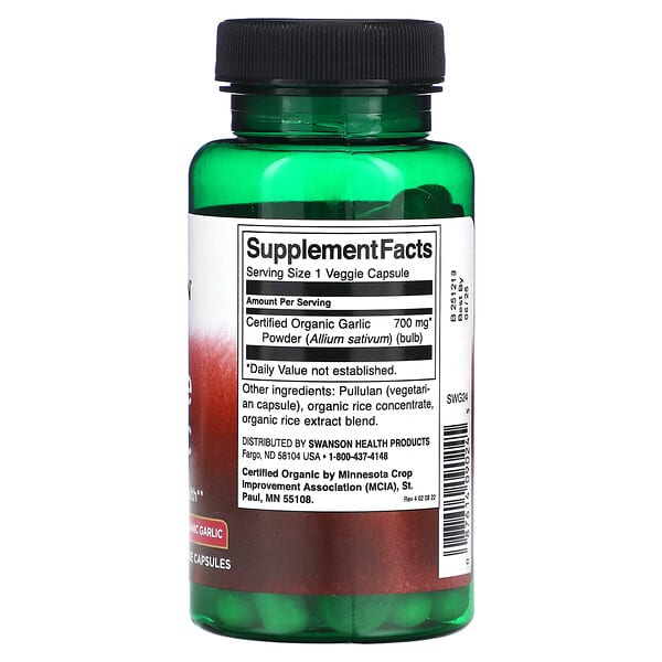 Trong thế giới dinh dưỡng, tỏi đã từ lâu được coi là một trong những thực phẩm tự nhiên có giá trị dinh dưỡng cao nhất. Với sản phẩm Swanson Whole Garlic 700 mg, 60 viên, bạn sẽ dễ dàng bổ sung những lợi ích tuyệt vời của tỏi vào chế độ ăn hàng ngày mà không phải lo lắng về mùi vị hay hơi thở khó chịu mà tỏi có thể gây ra.