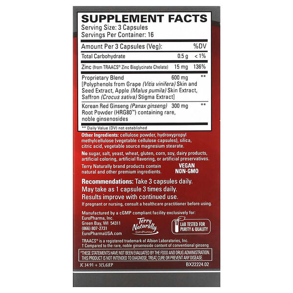Thông tin sản phẩm Terry Naturally, HRG80 Red Ginseng, 48 viên