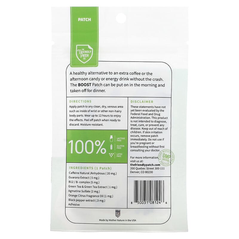 The Friendly Patch Boost Energy Patch là một sản phẩm hữu ích cho những ai muốn tăng cường năng lượng và sự tập trung mà không cần phải dựa vào cà phê hay các loại nước tăng lực có hại. Với thành phần tự nhiên, an toàn và dễ sử dụng, sản phẩm này hứa hẹn sẽ là một người bạn đồng hành lý tưởng trong cuộc sống bận rộn của bạn. Hãy trải nghiệm và cảm nhận sự khác biệt mà The Friendly Patch Boost Energy Patch mang lại!