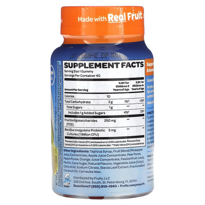 The Smurfs Kids Gummy Digestive Probiotic chứa các thành phần an toàn và tự nhiên, bao gồm: