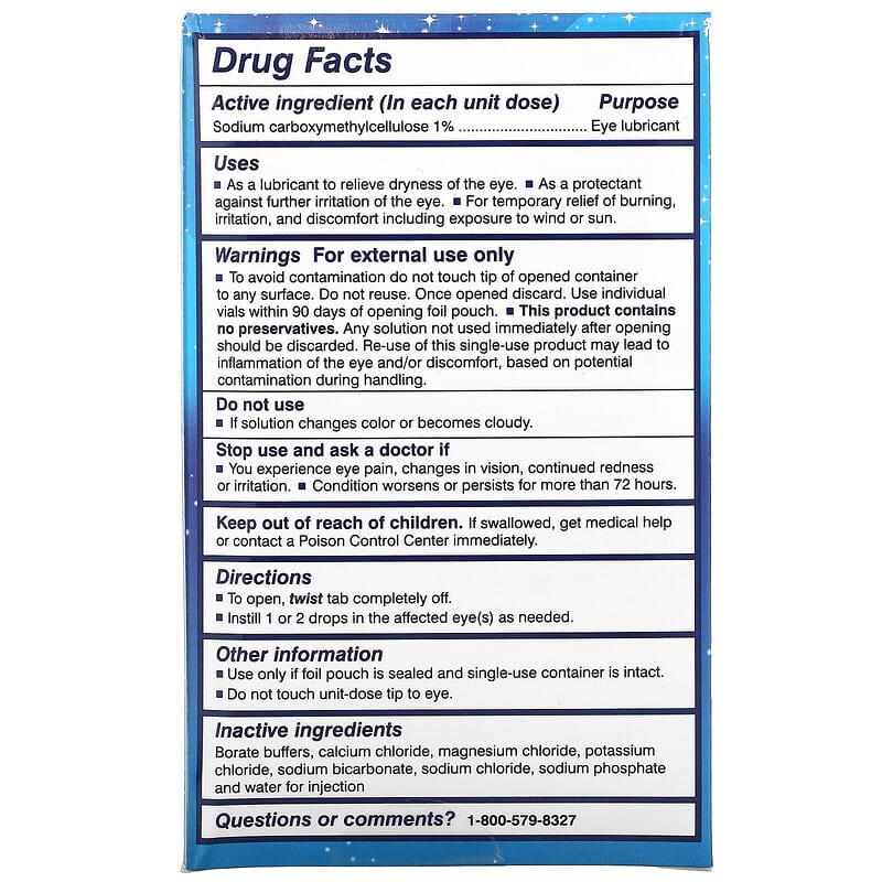– Sodium carboxymethylcellulose 1%: Đây là thành phần chính trong sản phẩm, có tác dụng như một chất bôi trơn, giúp làm giảm khô mắt.