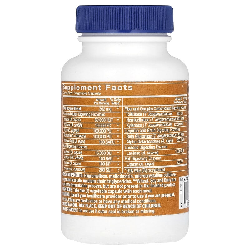 Ngoài các enzyme tiêu hóa, sản phẩm còn chứa các thành phần khác như Hypromellose, maltodextrin, microcrystalline cellulose, magnesium stearate và medium chain triglycerides. Đặc biệt, sản phẩm hoàn toàn không chứa gluten, sữa, đậu nành hay các thành phần từ hạt điều.