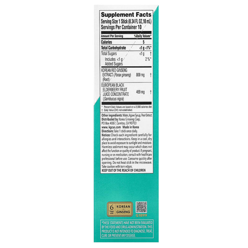 – Korean Red Ginseng Extract (Panax ginseng) (Root): Mỗi stick chứa 800 mg chiết xuất nhân sâm đỏ Hàn Quốc. Nhân sâm đỏ nổi tiếng với khả năng tăng cường sức đề kháng, hỗ trợ hệ miễn dịch và giúp cơ thể thích nghi với stress.