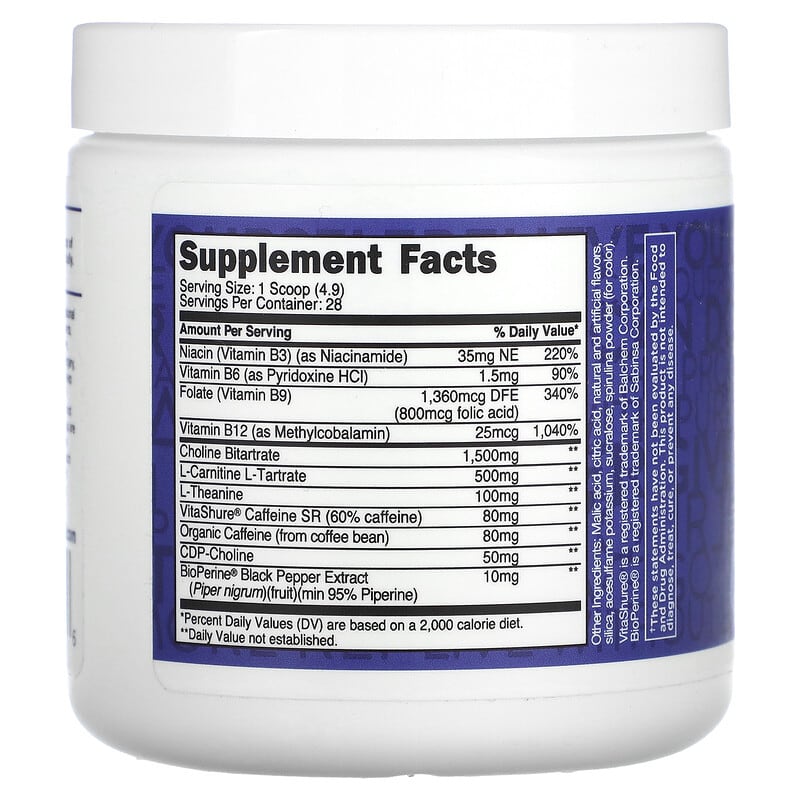 – Choline Bitartrate: 1,500 mg, hỗ trợ chức năng não và tăng cường trí nhớ.